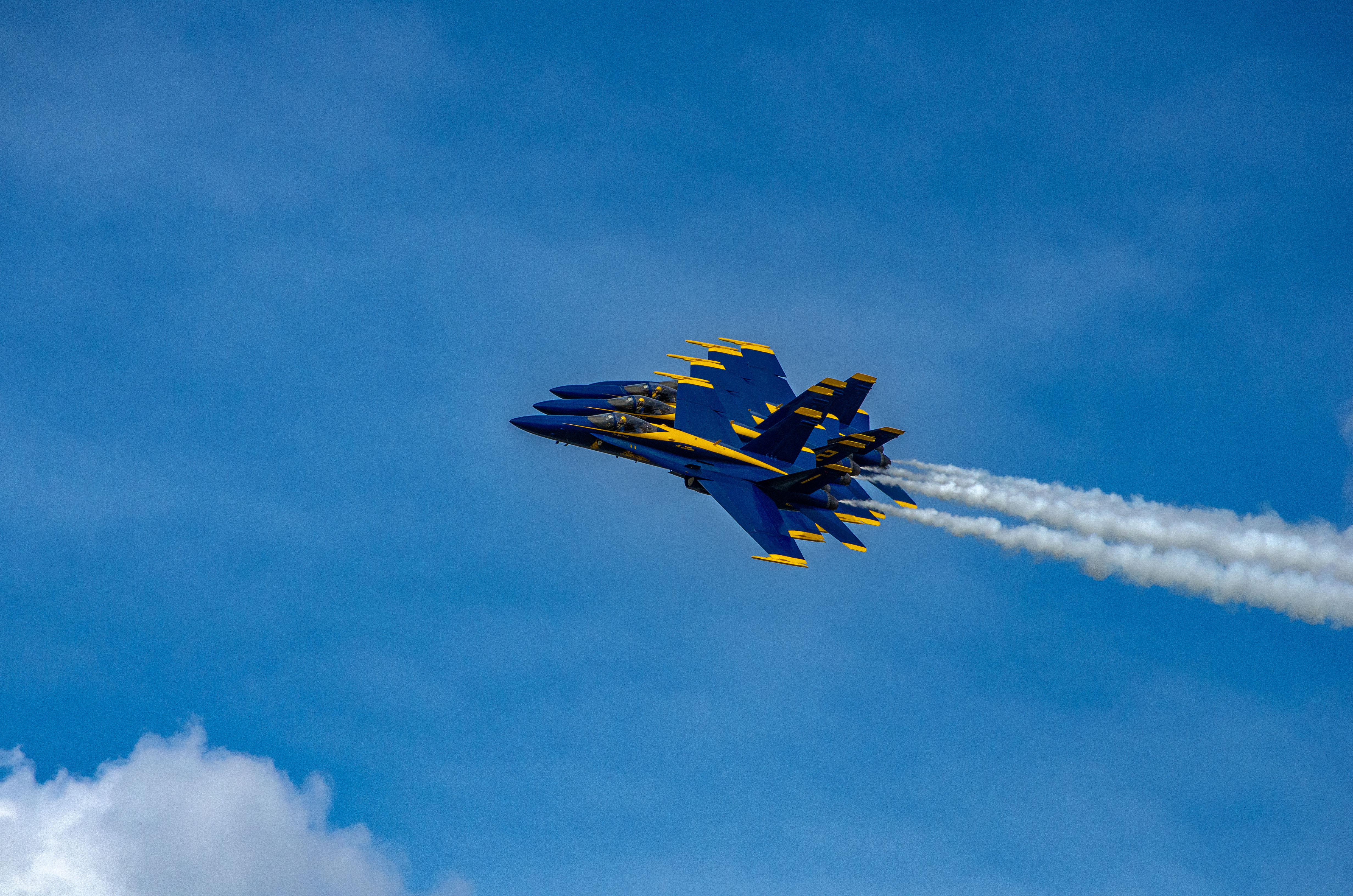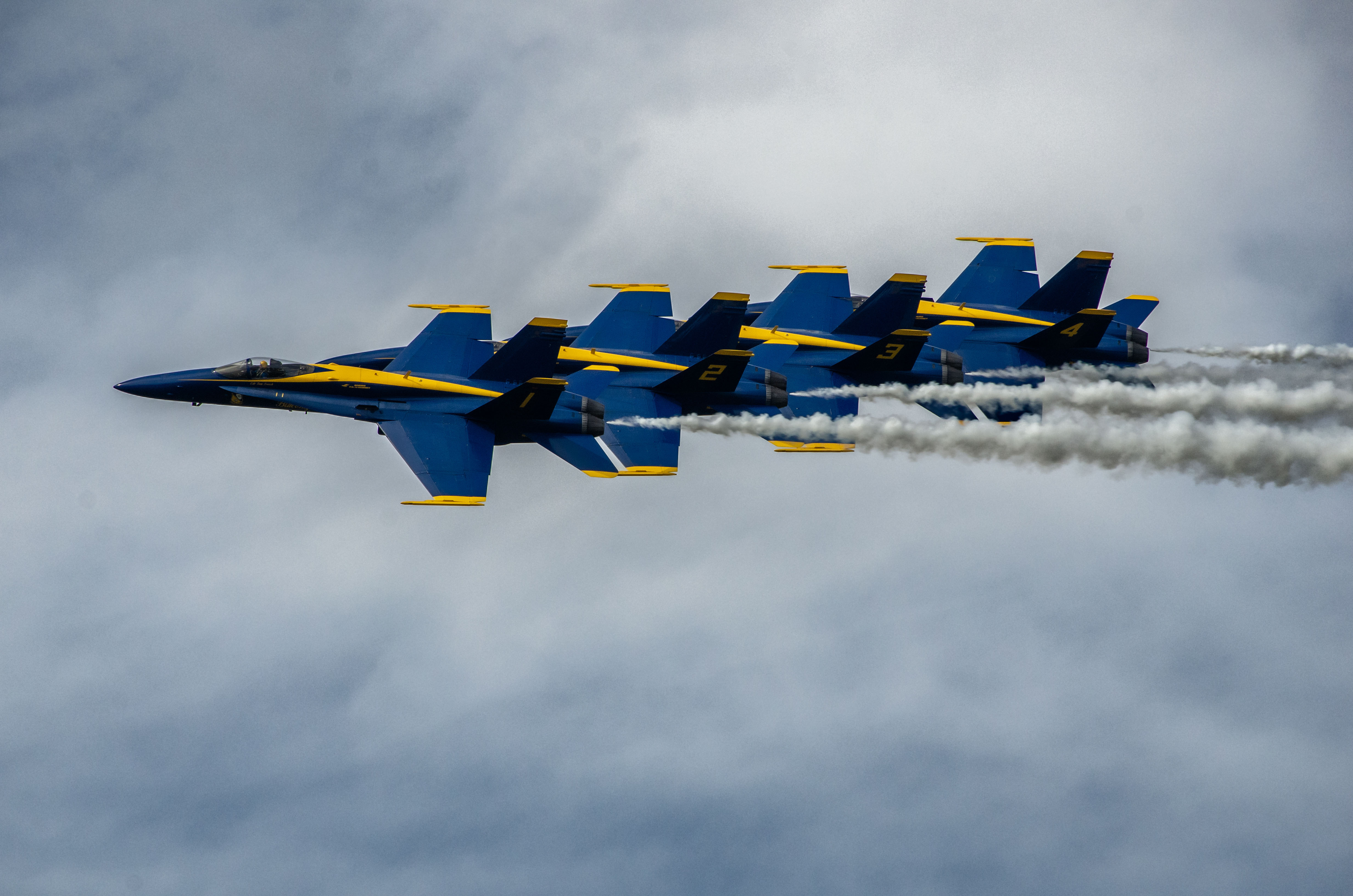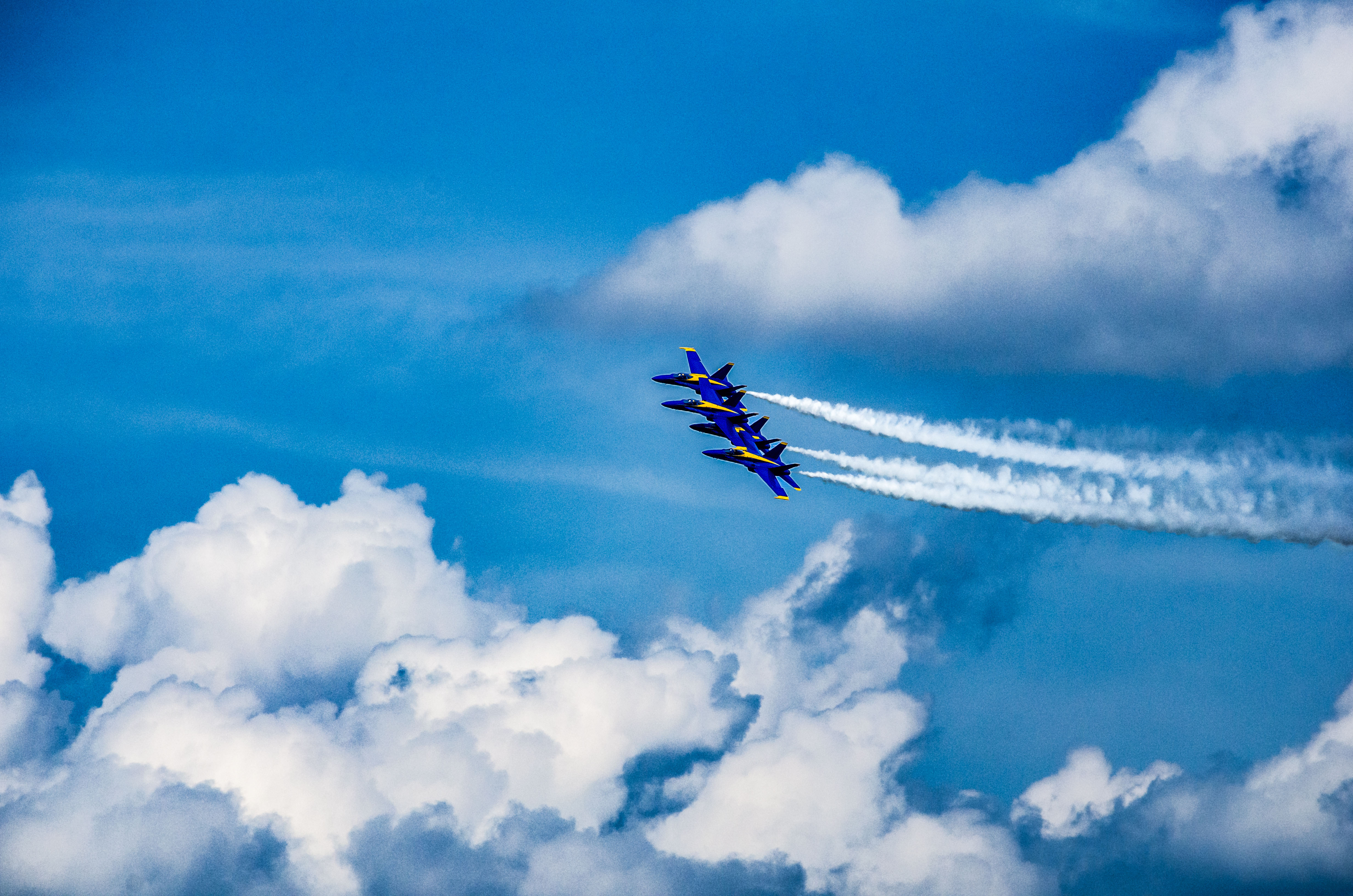 Captivating photography project that captures the breathtaking precision and artistry of the U.S. Navy Blue Angels as they perform their dazzling aerial stunts over the city of Cleveland.