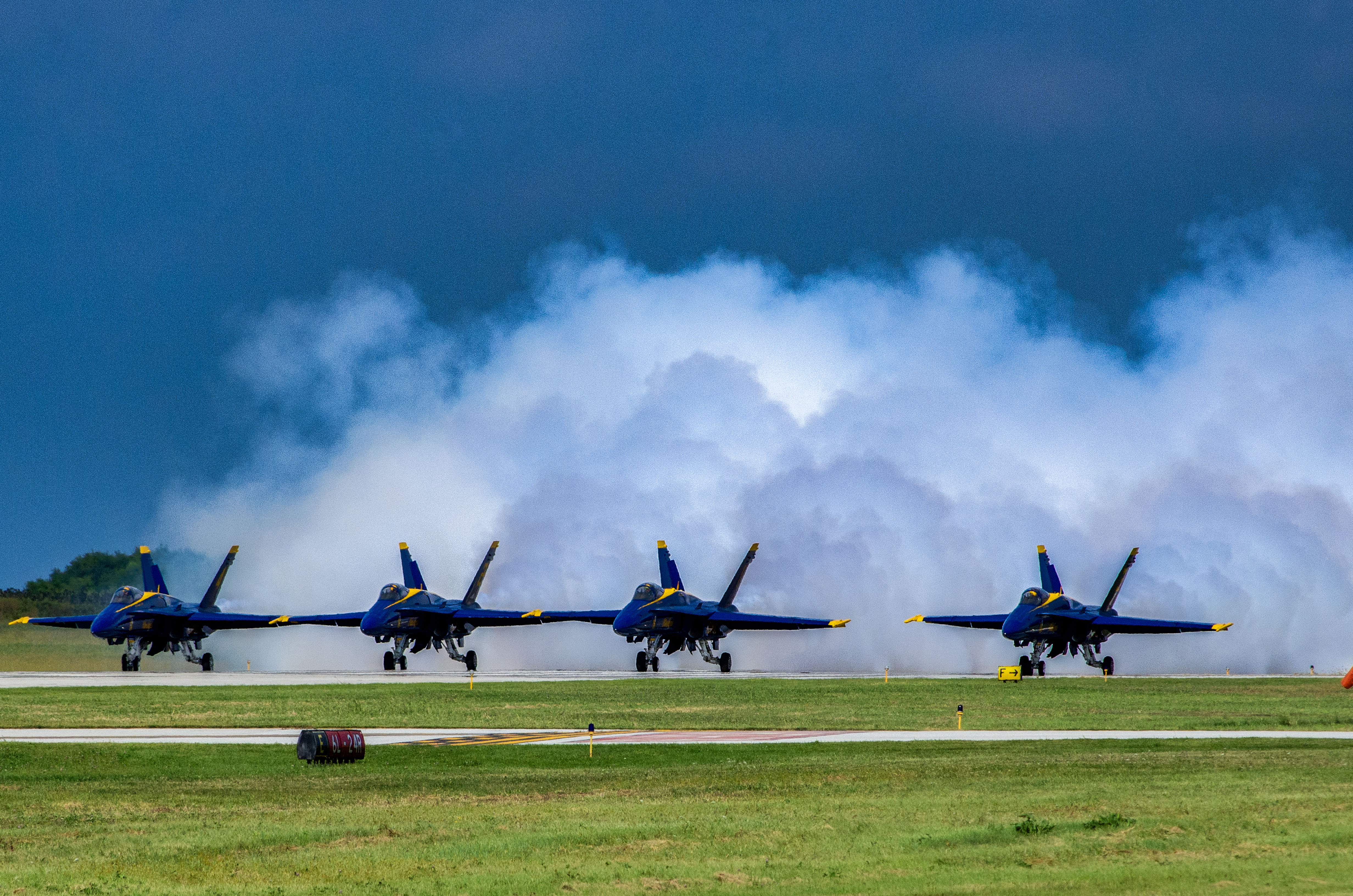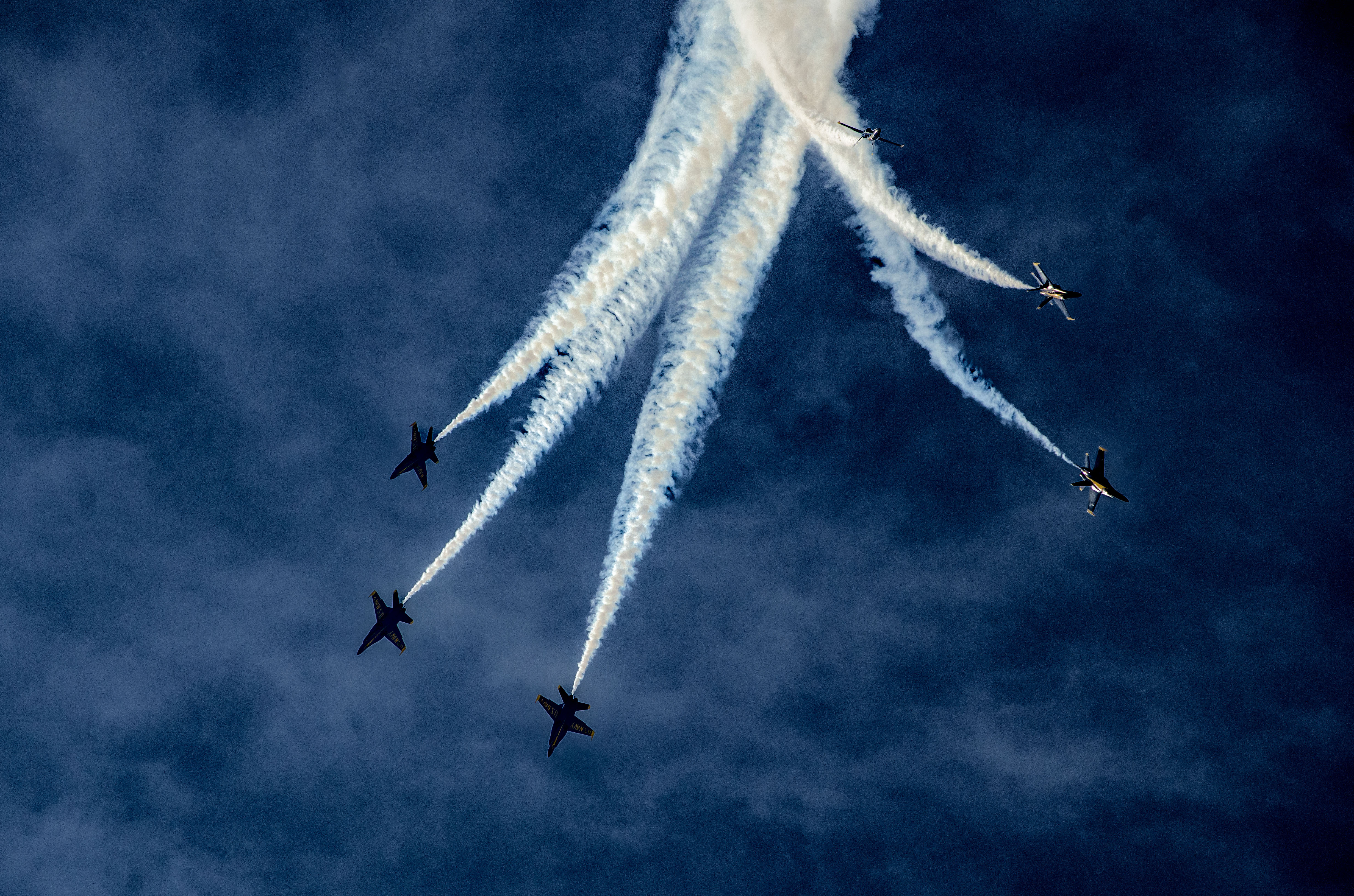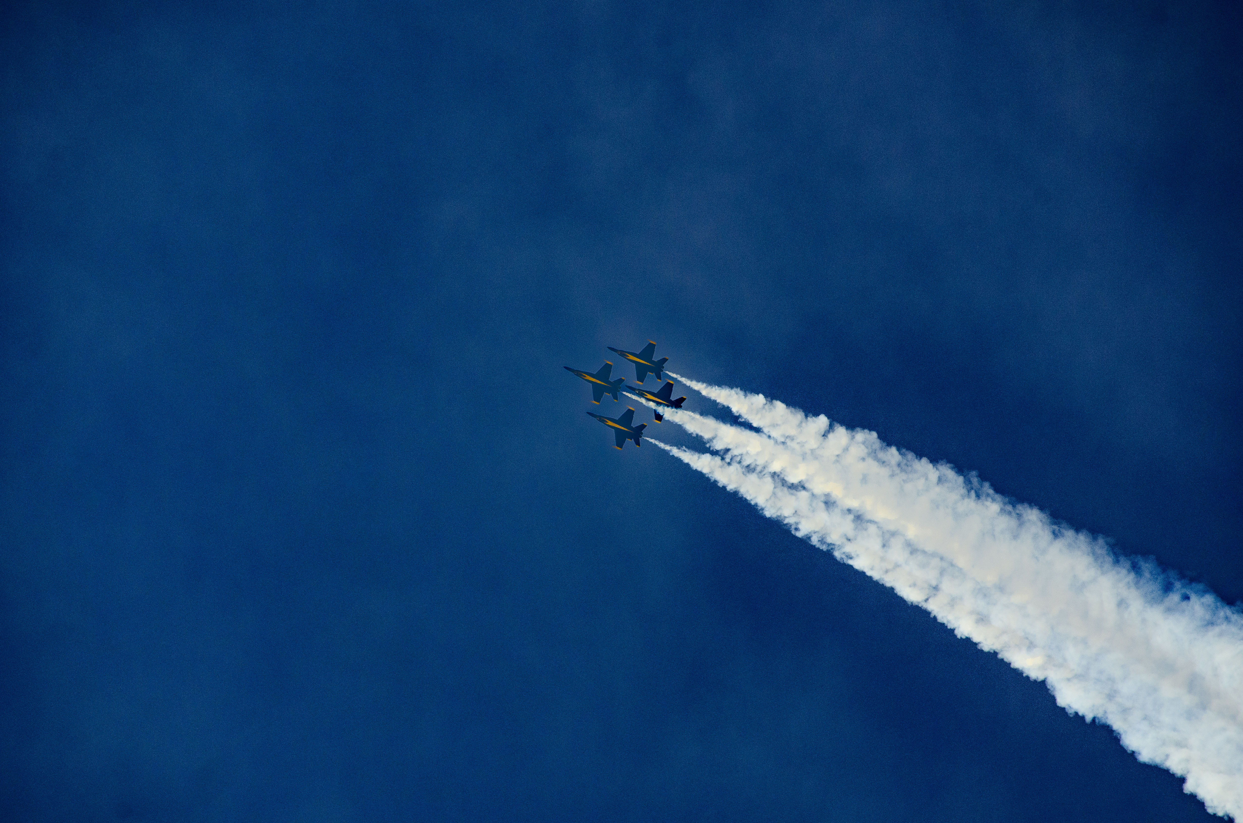 Captivating photography project that captures the breathtaking precision and artistry of the U.S. Navy Blue Angels as they perform their dazzling aerial stunts over the city of Cleveland.